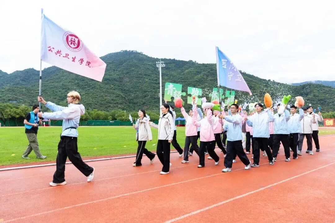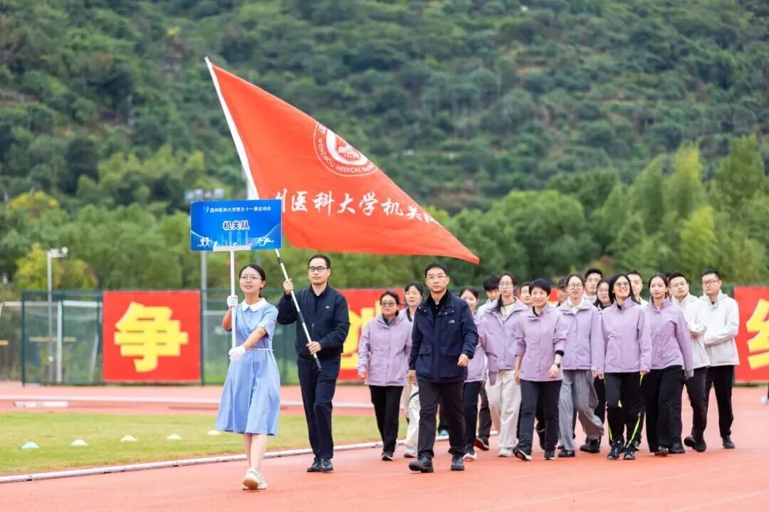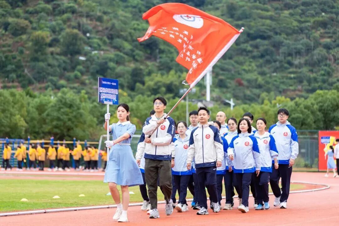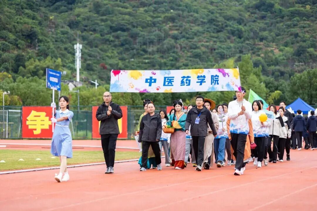 踏着激昂的运动员进行曲,由av在线看 各部门、av在线看、附属医院组成的代表方阵稳步走来,用各式各样的服装、道具和演出展示着各具特色的精神风貌,成为了赛场上引人瞩目的活力风采。