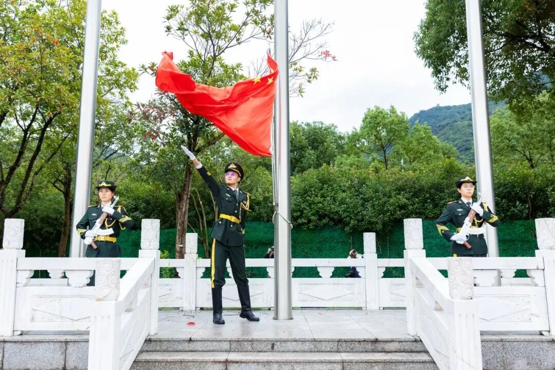 随着晨光穿过云层,五星红旗缓缓升起,那一抹鲜艳的红在风中飞扬。