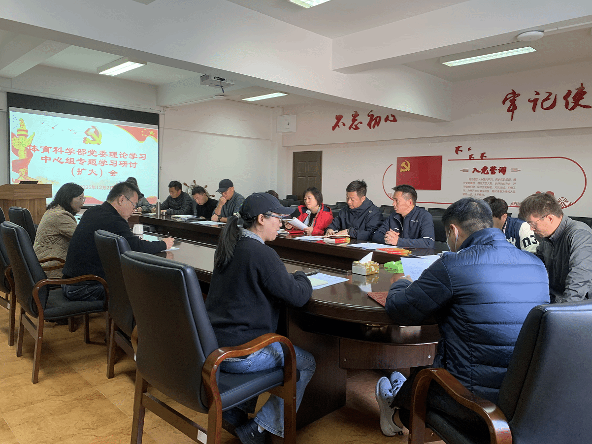 12月2日上午,体育科学部党委在体育馆A402会议室召开理论学习中心组专题学习研讨(扩大)会,深入学习贯彻党的二十届四中全会精神,传达学习省委十五届八次全会精神,围绕全会精神科学谋划部门“十五五”发展蓝图,助推部门高质量发展。党委书记陈素云主持会议并领学。部门主任刘海平、理论中心组全体成员、部门中层干部等参加会议。