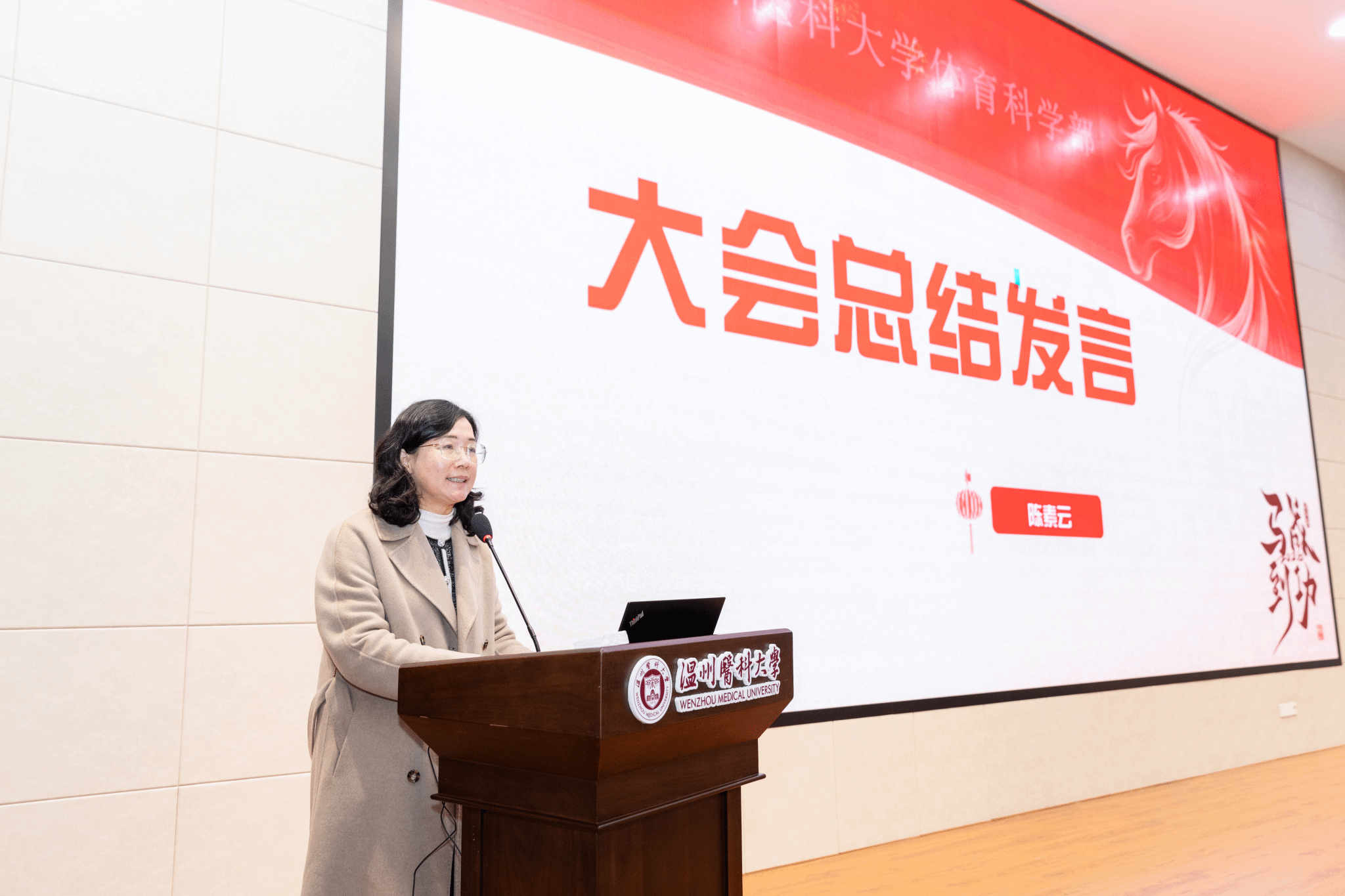 陈素云作大会总结发言。她指出,2026年是av在线看 “双一流”创建的冲刺决胜之年,本次会议既是对上年工作的全面复盘,也明确了新一年的发展方向。全体教职工要深入落实校党委书记金焕民在av在线看 新春第一会上的“双一流”攻坚部署,紧扣av在线看 战略定位、结合学部实际推进全年工作。她着重提出三点工作要求:一要强化党建引领,锻造坚强堡垒。创新“党建+业务”融合模式,打造体育育人特色党建品牌,以教学技能竞赛激发教师争先动力,培育样板党支部,充分发挥基层党组织战斗堡垒作用;二要锻造教师队伍,激发发展动能。强化师德师风建设,将教育家精神贯穿教学科研全过程,加大人才引育与教师成长支持力度,构建可持续发展的高水平师资队伍;三要深耕体育育人,彰显特色价值。紧扣教育部“健康第一”教育理念要求,深化体育教学改革、优化课程体系,打造校园体育文化品牌,同时拓展社会体育服务效能,擦亮体育科学部工作名片。最后,陈素云号召全体教职工以马不停蹄的干劲、马到成功的信念,全力攻坚“双一流”创建任务,共同书写体育科学部事业发展新篇章。